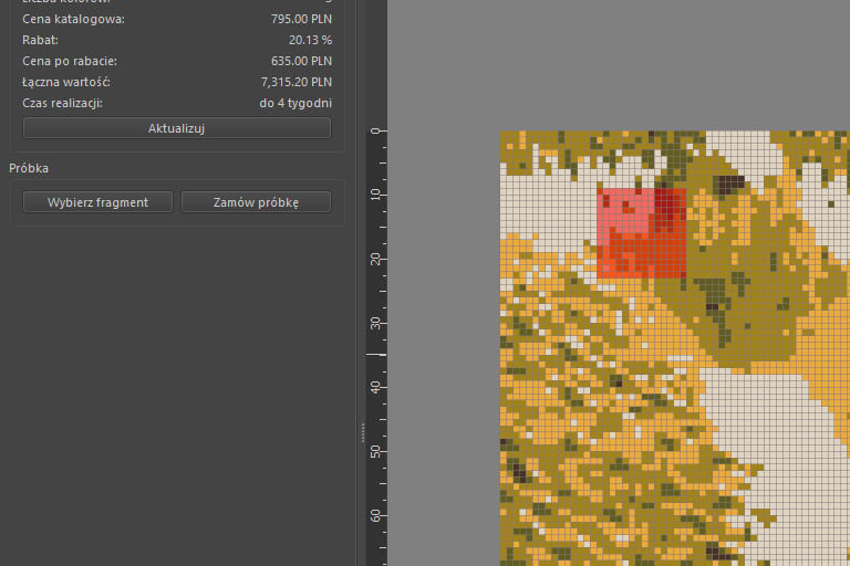 • In the Order tab, click the Select Mosaic Fragment button to begin choosing the section of the mosaic you wish to order as a sample. A special layer will appear on the screen, highlighting the section of the project you want. The selected fragment will be the size of one full mosaic sheet (14 x 14 tiles).