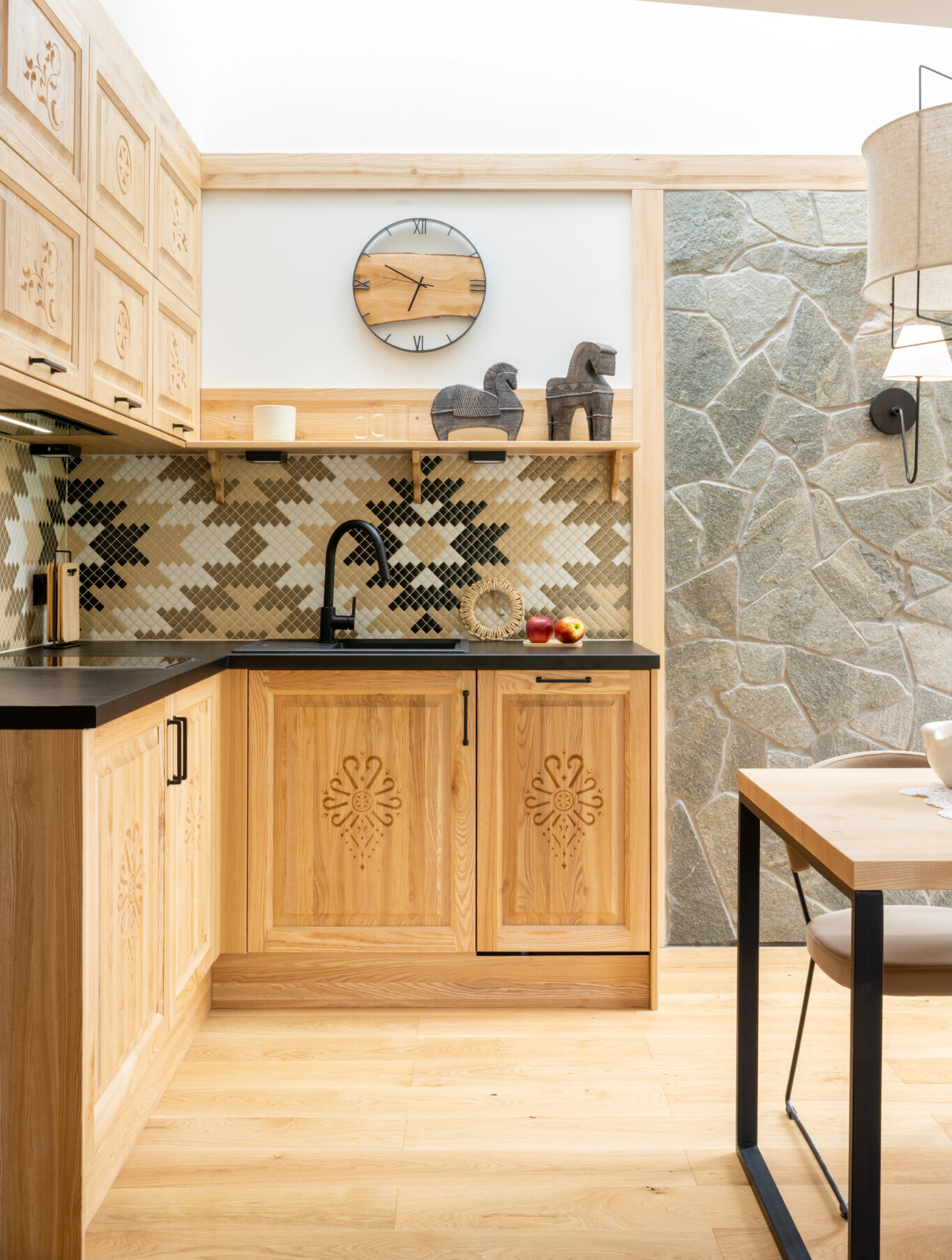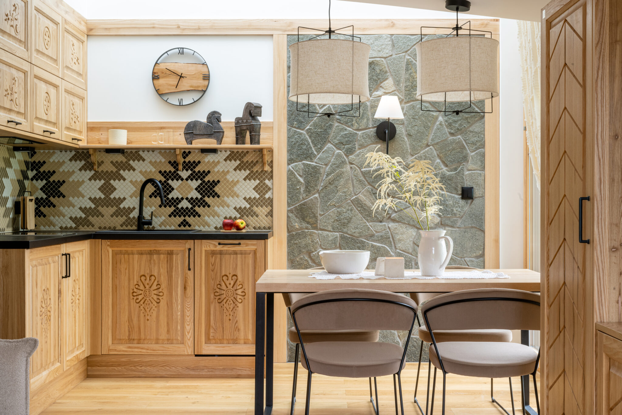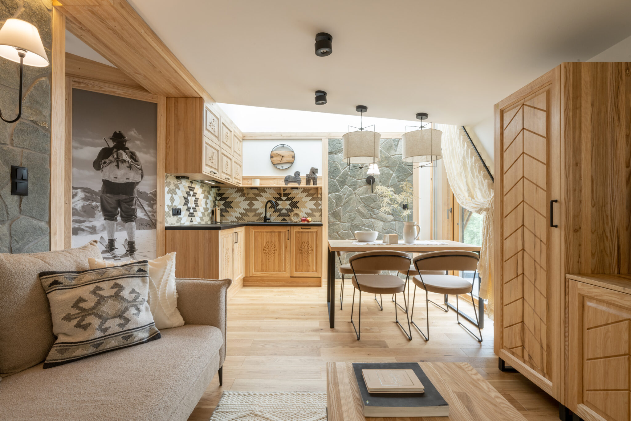 Każdy element apartamentu w Białce Tatrzańskiej został starannie zaprojektowany, aby stworzyć klimatyczne, zakopiańskie wnętrze.