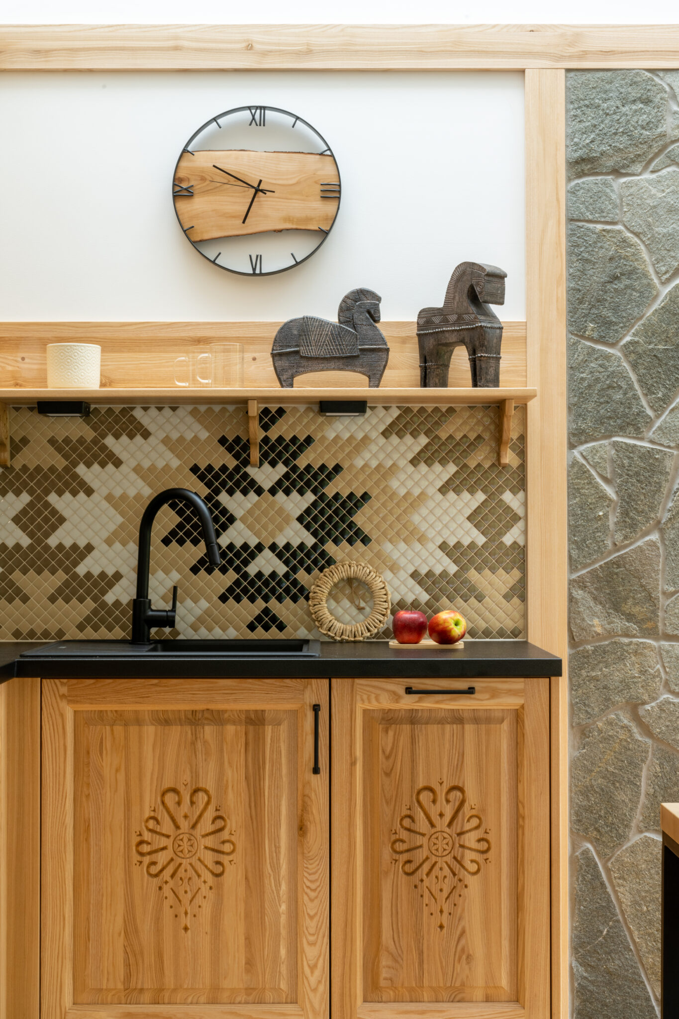 Wzór mozaiki nawiązuje do tradycyjnych podhalańskich haftów.